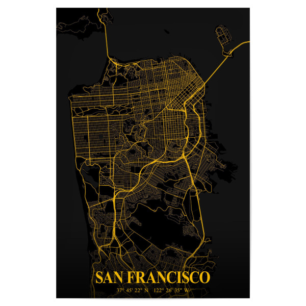 Poster mit Rahmen Gold "San Francisco City Street Map 3" artboxONE - Städte,Städte / San Francisco,Kartografie