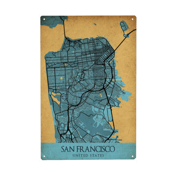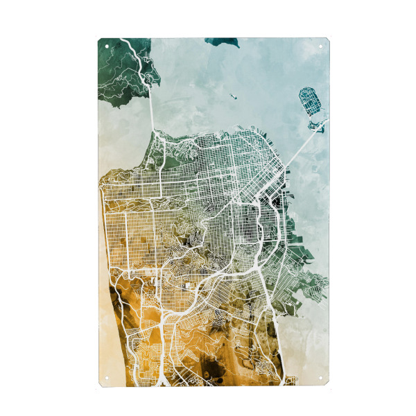 Metall Poster "San Francisco City Map" artboxONE - Städte / San Francisco,Kartografie