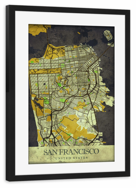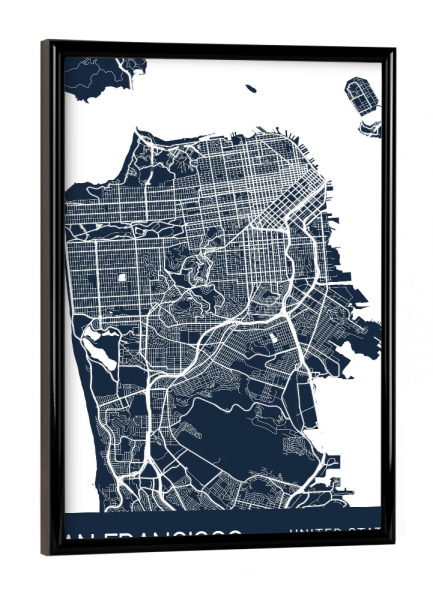 Poster mit schwarzem Rahmen "City Map von San Francisco" artboxONE - Städte / San Francisco,Kartografie
