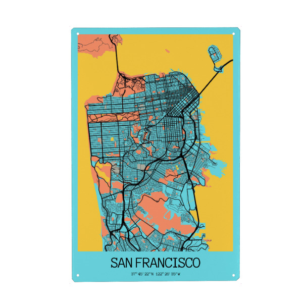 Metall Poster "CityMap San Francisco" artboxONE - Städte / San Francisco,Kartografie