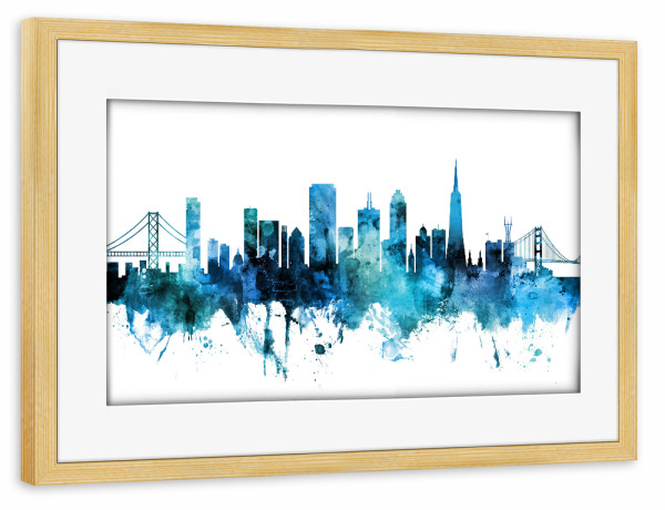 Poster mit Rahmen kiefer "San Francisco City Skyline blue" artboxONE - Städte / San Francisco