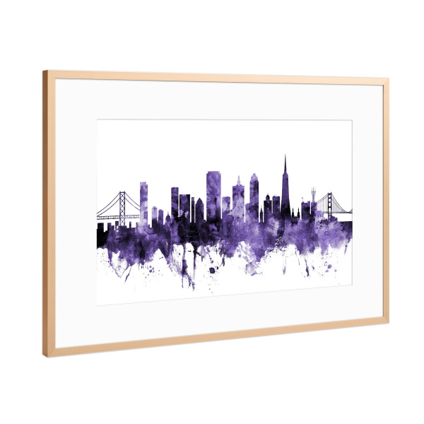 Poster mit Rahmen Kupfer "San Francisco Skyline violet 2" artboxONE - Städte,Reise,Ultraviolet,Städte / San Francisco