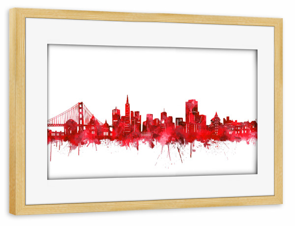 Poster mit Rahmen kiefer "San francisco skyline red" artboxONE - Städte,Reise,Städte / San Francisco