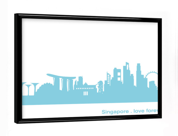 Poster mit schwarzem Rahmen "SINGAPUR 08 Skyline Pastel-Blue Print monochrome" artboxONE - Abstrakt,Architektur,Städte / Singapur