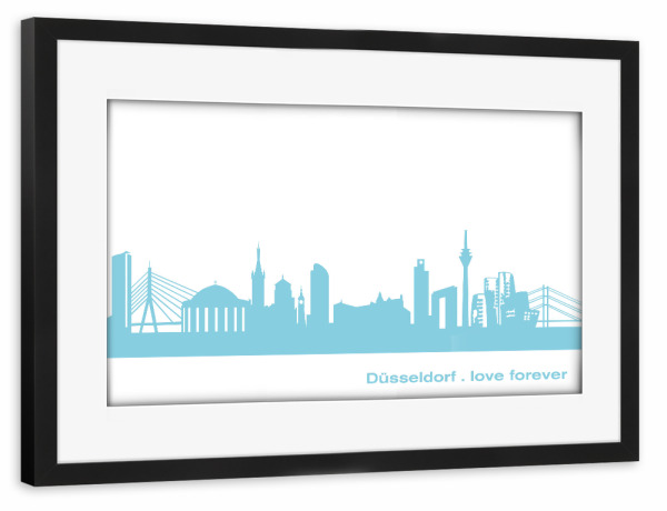 Poster mit Rahmen schwarz "DÜSSELDORF 08 Skyline Pastel-Blue Print monochrome" artboxONE - Abstrakt,Architektur,Städte / Düsseldorf