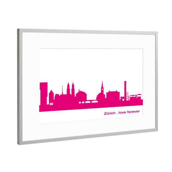 Poster mit Rahmen Silber "Zürich 04 Pink Skyline Print monochrome" artboxONE - Abstrakt,Städte / Zürich