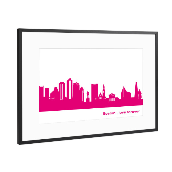 Poster mit Rahmen Schwarz (Metallic) "Boston 04 Pink Skyline Print monochrome" artboxONE - Städte,Abstrakt,Architektur,Städte / Boston
