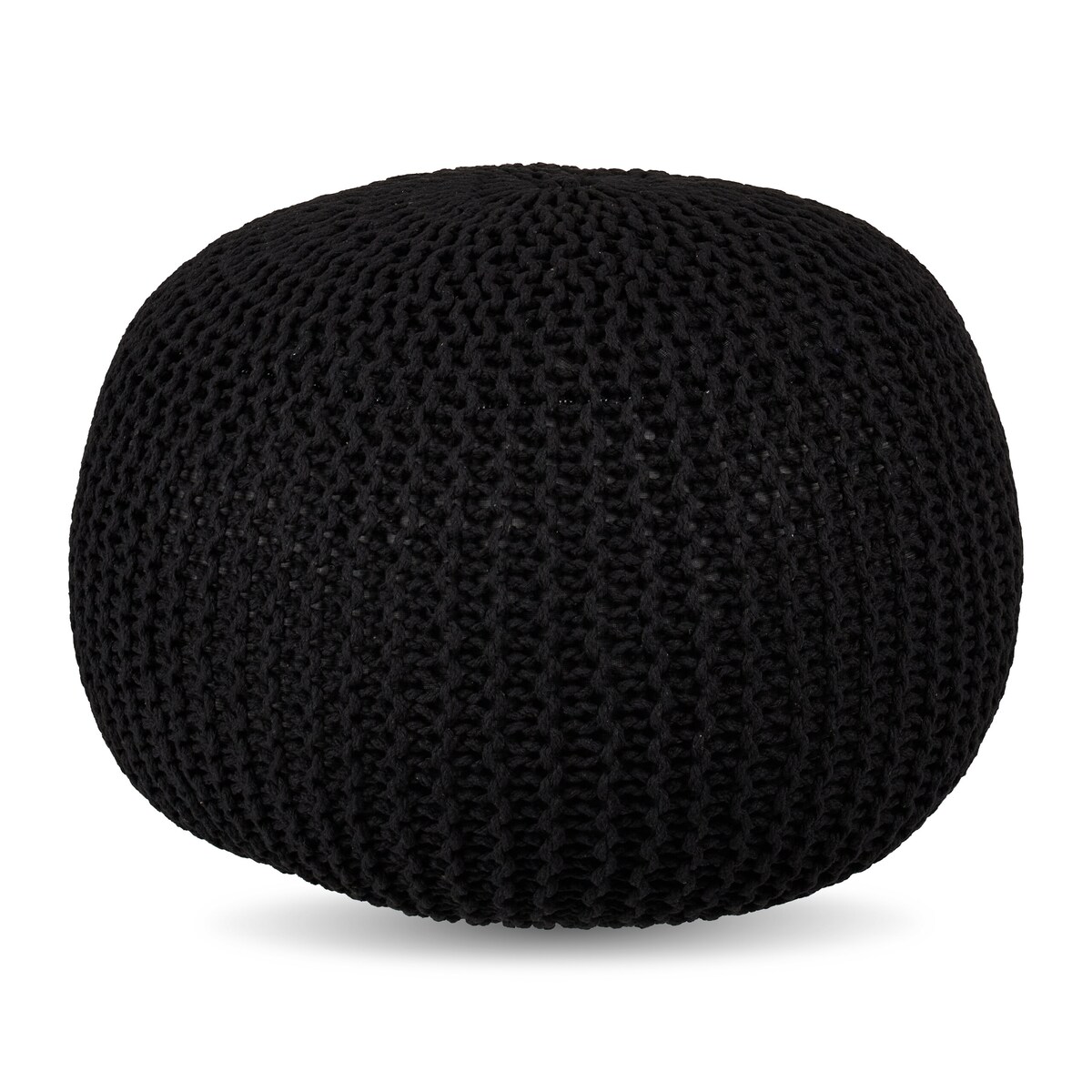Relaxdays Pouf, gestrickt, HxD: 33 x 46 cm, Polystyrol-Füllung, rundes Bodensitzkissen, Boho Hocker, Sitzpouf, schwarz