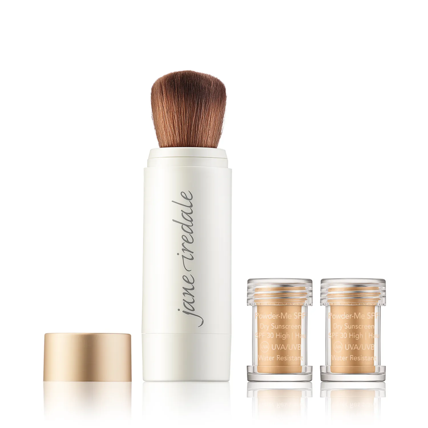 Jane Iredale Powder-Me SPF Refillable Brush + 2 Refills Golden (1 Stück + 2x2,5 g)