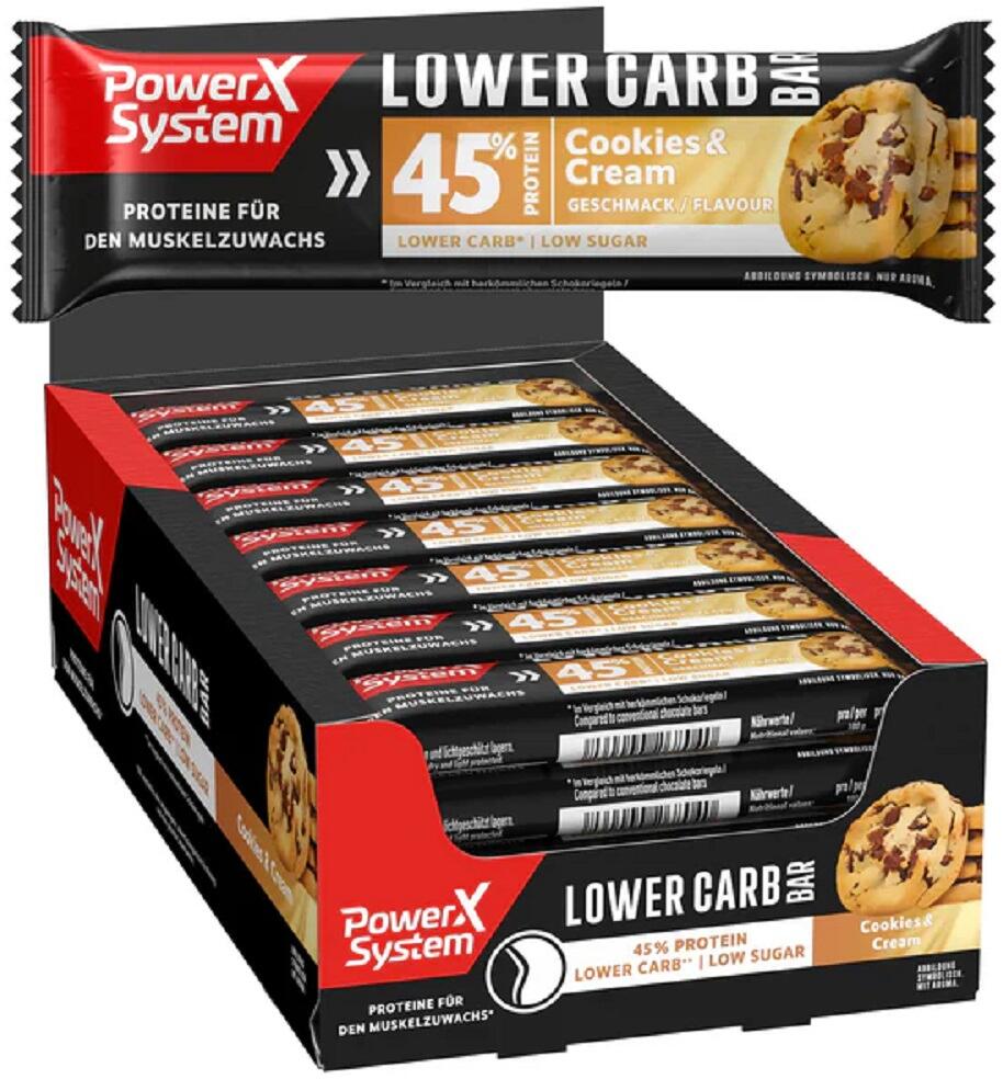 Power System Lower Carb Bar, 28 x 40 g Riegel, Cookies & Cream