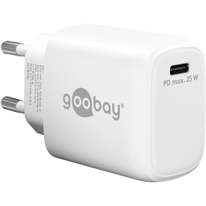 goobay USB-C PD GaN Schnellladegerät 25 Watt Ladegerät, weiß, Power Delivery 3.0