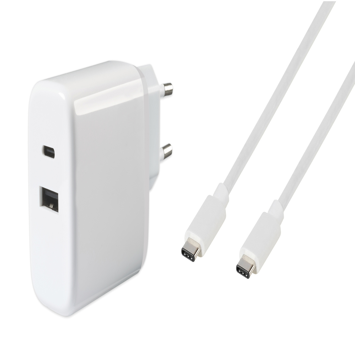 Vivanco Ultra-schnelles Universal-Doppelladegerät Power Delivery 3.0 USB 65W USB C + USBA-Stecker, 1 Meter