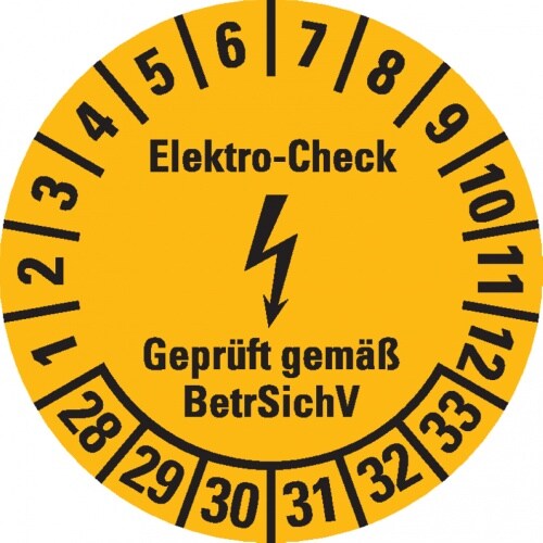 Dreifke Prüfplakette Elektro-Check BetrSichV, 28-33, gelb/schwarz, Dokufolie...