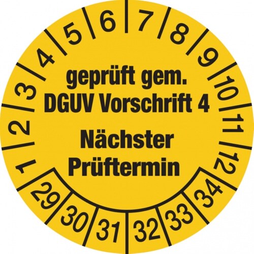 König Werbeanlagen Dreifke Prüfplakette, DGUV Vorschrift 4 Nächster Prüftermin, ge - 30 mm Folie selbstklebend