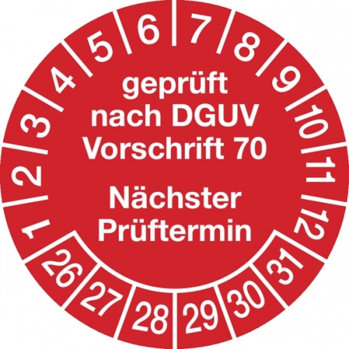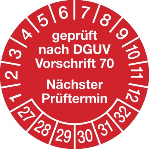 Prüfplaketten nach DGUV nächster Prüftermin rot