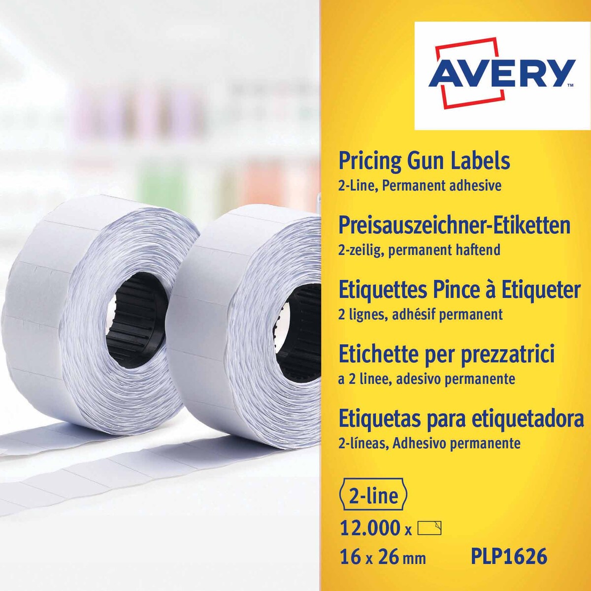AVERY Preisauszeichner-Etiketten 26 x 12 mm gelb 10 Rollen à 1.500 Etiketten