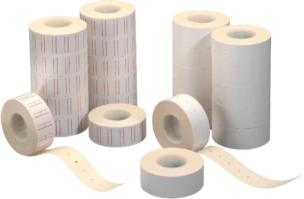 Preisauszeichner-Etiketten 21,6x12mm 1-zeilig weiß oder weiß/rot 12 Rollen a 1.200 Etiketten Packung mit 20 Stück