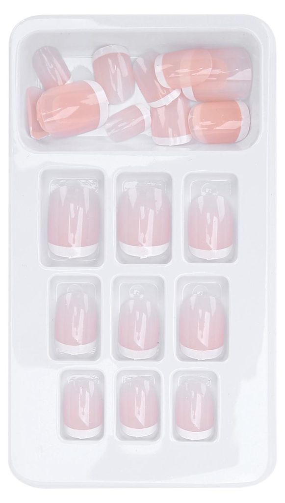 GKA Künstliche Fingernägel 24p G33 rosa weiß zum Aufkleben press on Nails Klebepads mit Kleber und Nagelfeile Nägel