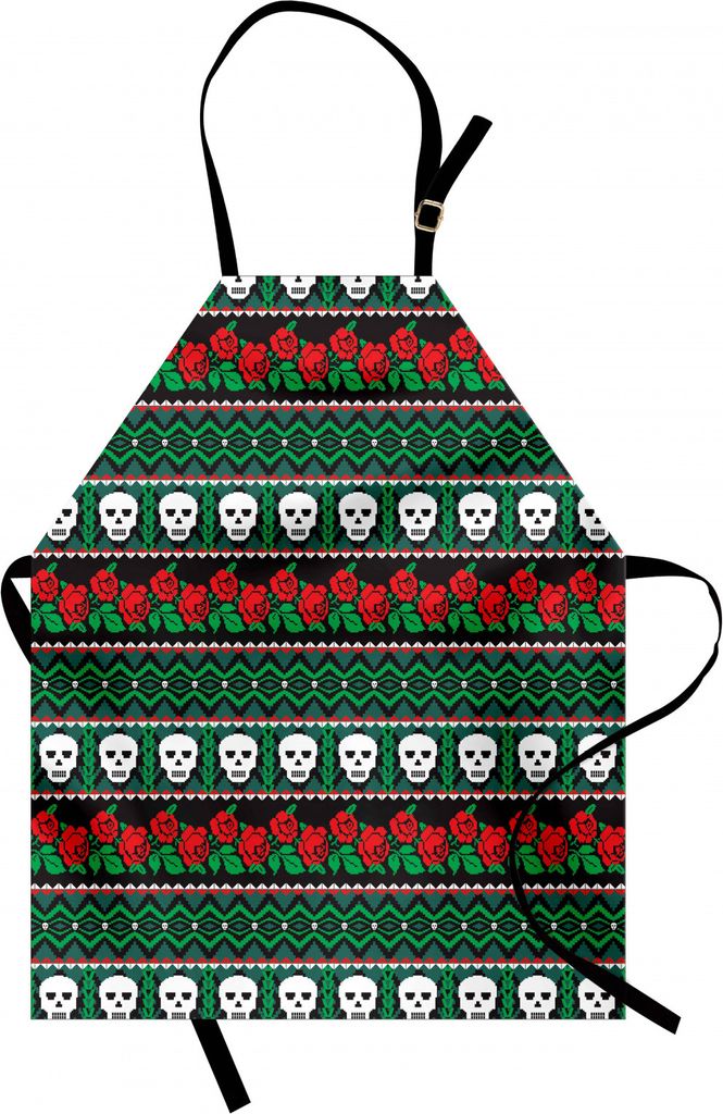 ABAKUHAUS Schädel Kochschürze, Mexikanische Folklorische Kunst und Rosen Gestrickte Seem Pattern Traditional Borders Print, Farbfest Höhenverste...