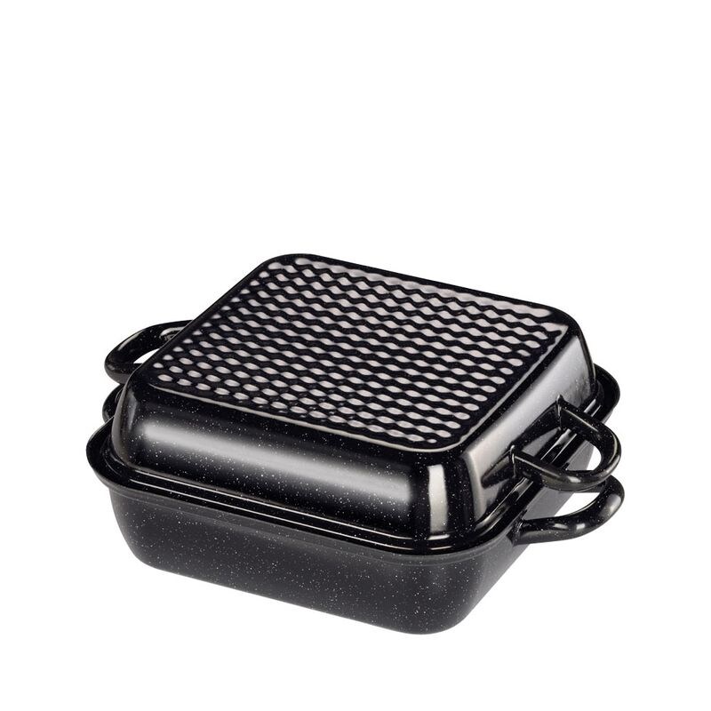 Riess Emaille Bratpfanne mit Deckel 36x26 cm schwarz Profi