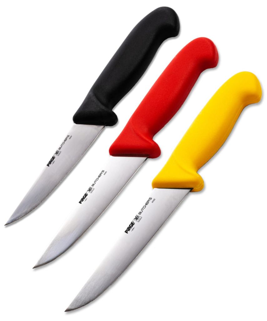 Pirge Butcher's Germany Profi Metzgermesser Set 12.5-14.5 - 16.5 cm - Schärfste Schlachtermesser - Fleischermesser - Stechmesser