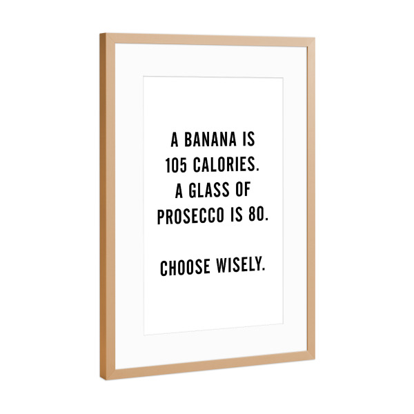 Poster mit Rahmen Kupfer "Banana Prosecco calories comparison" artboxONE - Typografie,Essen & Trinken,Comic,Schwarzweiß