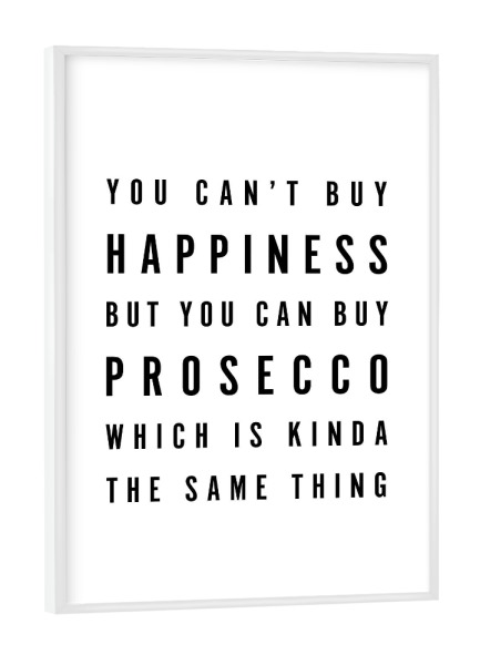 Poster mit weißem Rahmen "You Can't Buy Happiness Prosecco 2" artboxONE - Typografie,Essen & Trinken,Schwarzweiß,Essen & Trinken / Alkohol,Lustig
