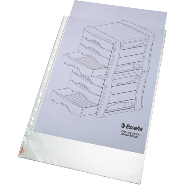 Esselte Prospekthüllen 100% Recycelt DIN A4 Genarbt Transparent 70 Mikron PP (Polypropylen) Öffnung oben 11 Löcher 627493 100 Stück