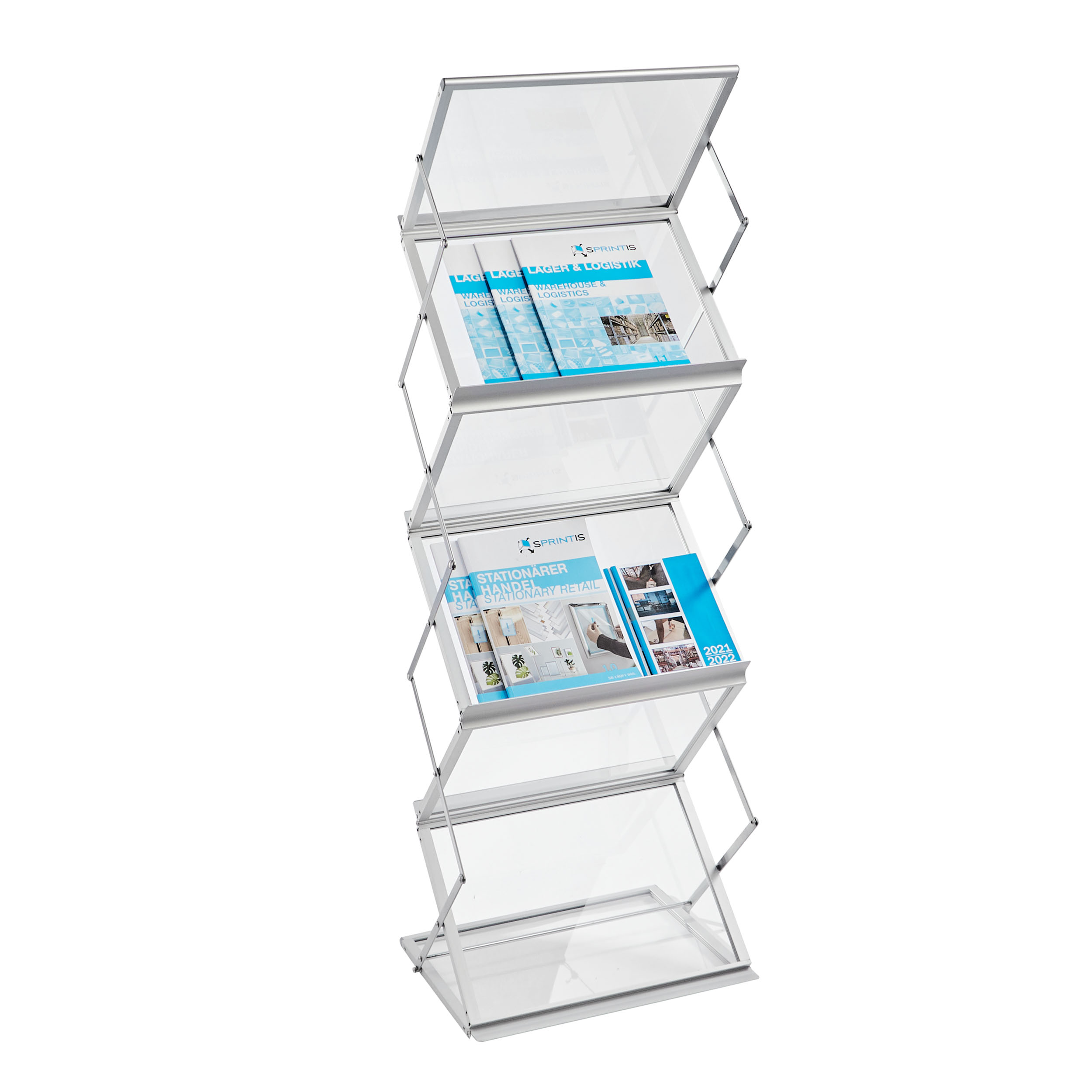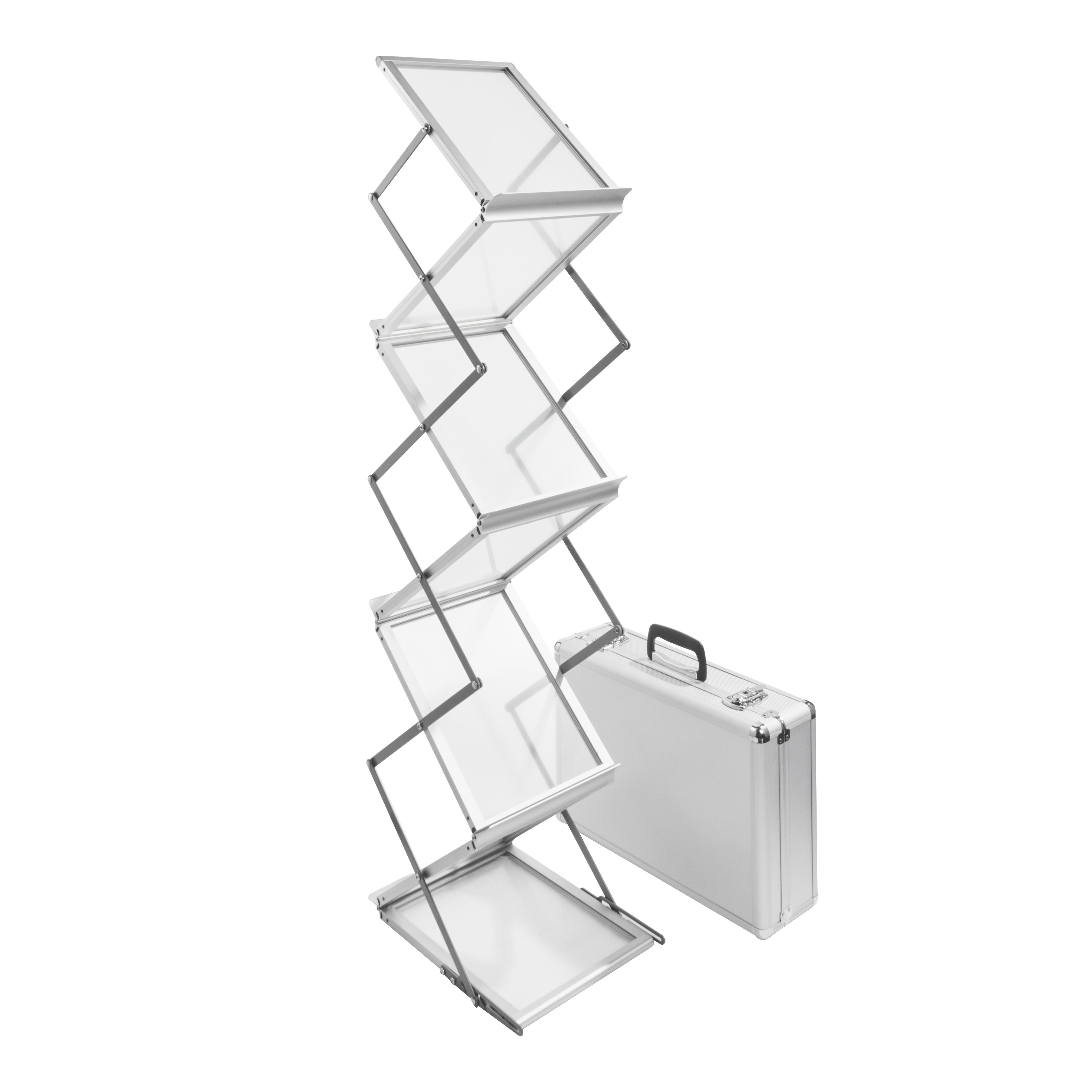 Faltbarer Prospektständer I ALU/ACRYL Bodenprospektständer A4 Kataloghalter Falt-Prospektständer Pop-up Ständer für Messe und Büro (mit Koffer)