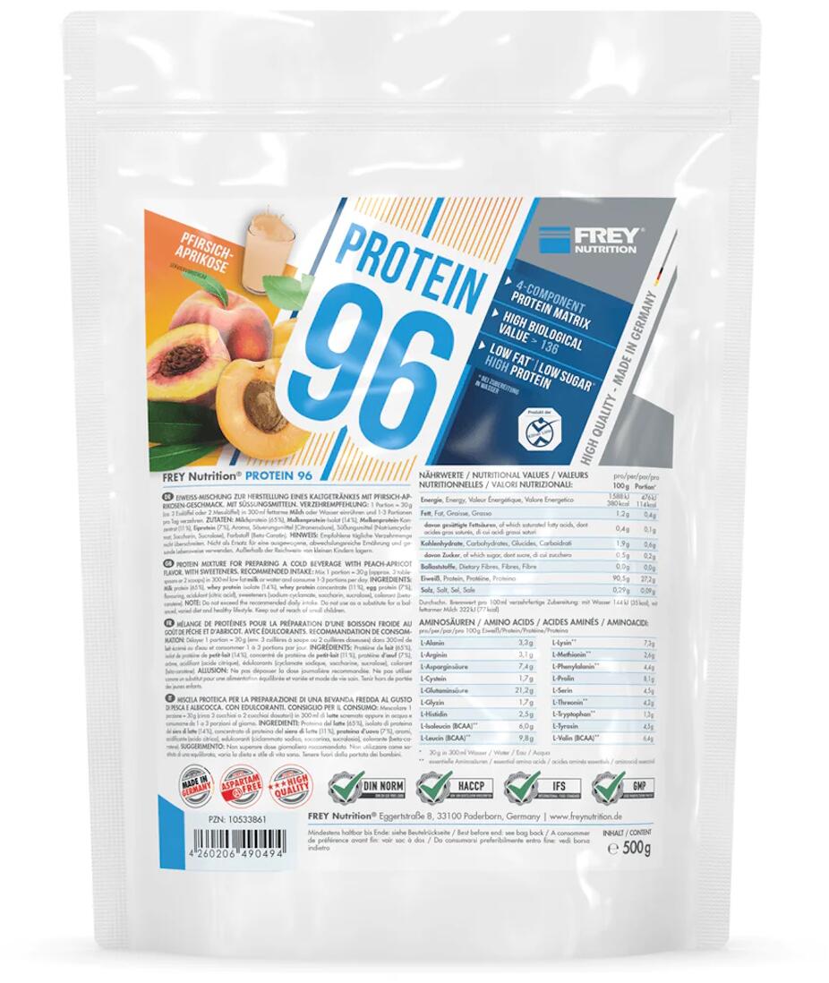 Frey Nutrition Protein 96, 500 g Beutel, Pfirsich-Aprikose