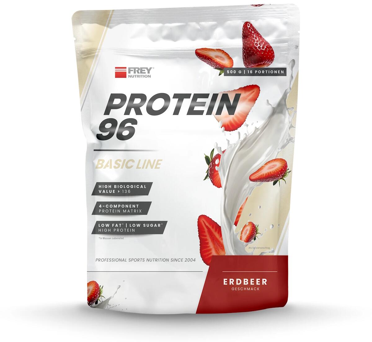 Frey Nutrition Protein 96, 500 g Beutel, Erdbeer