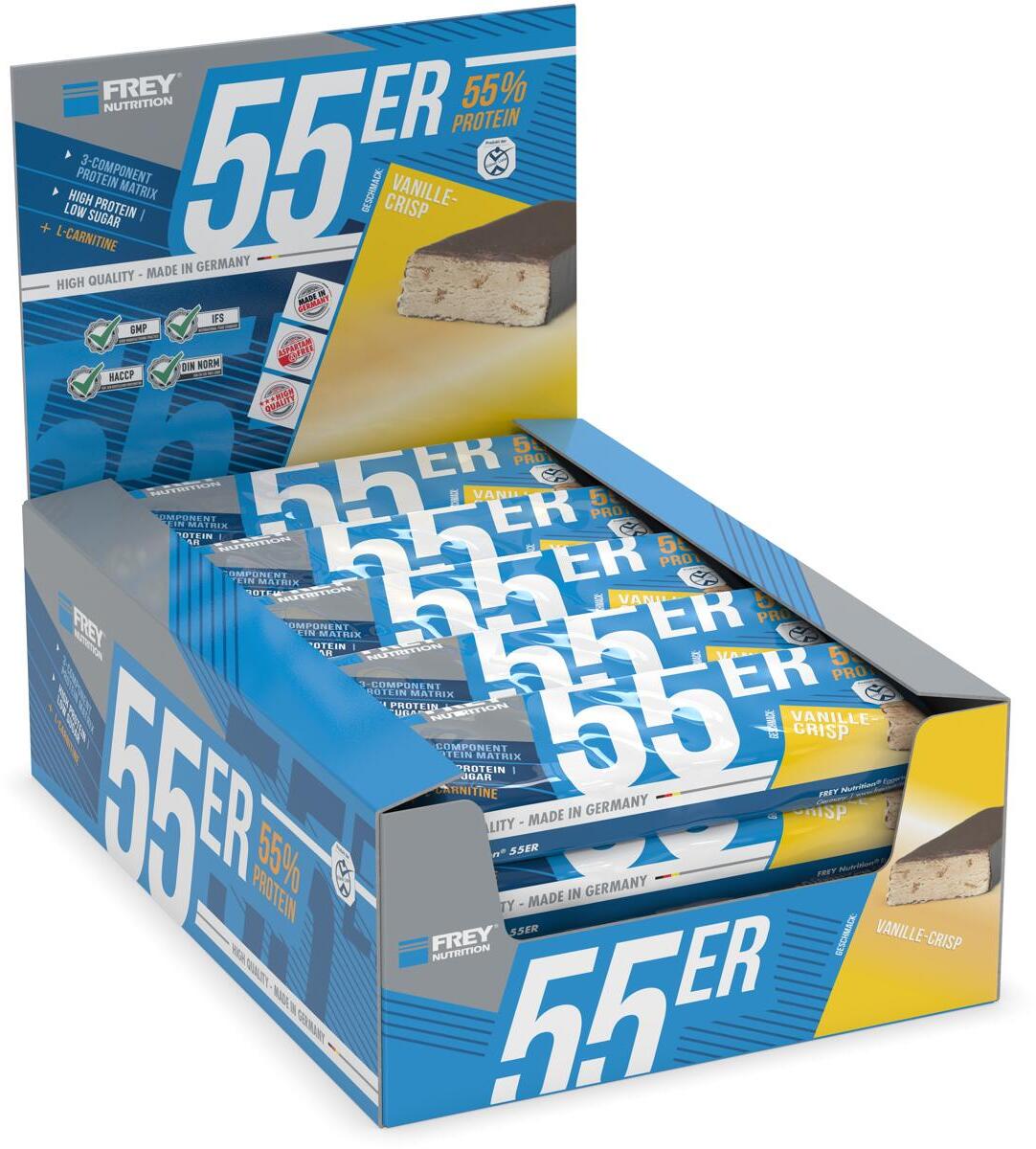 Frey Nutrition 55er Protein Bar, 20 x 50 g Riegel, Vanille-Crisp