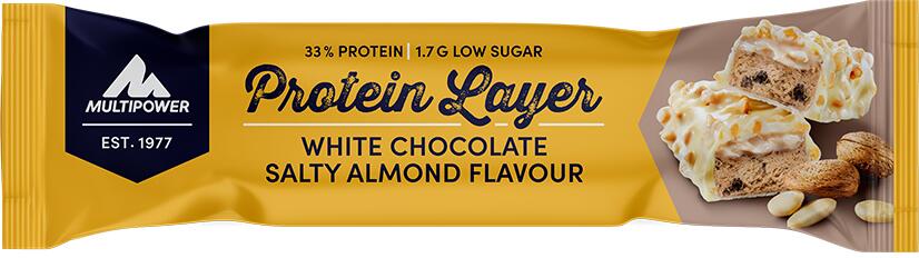 Multipower Protein Layer Bar, 18 x 50 g Riegel, White Chocolate Salty Almond
