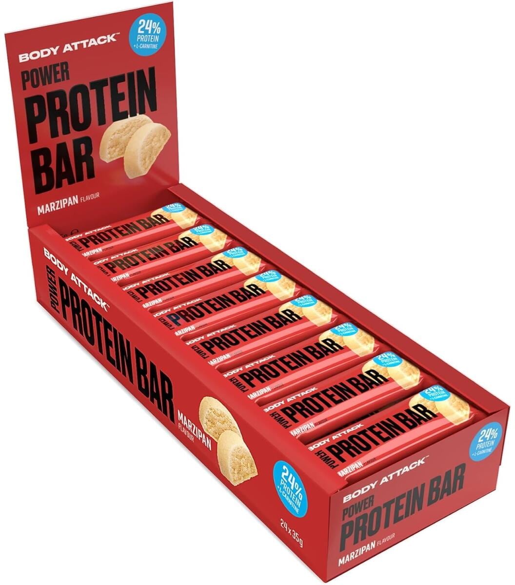 Body Attack Power Protein Bar, 24 x 35 g Riegel, Marzipan