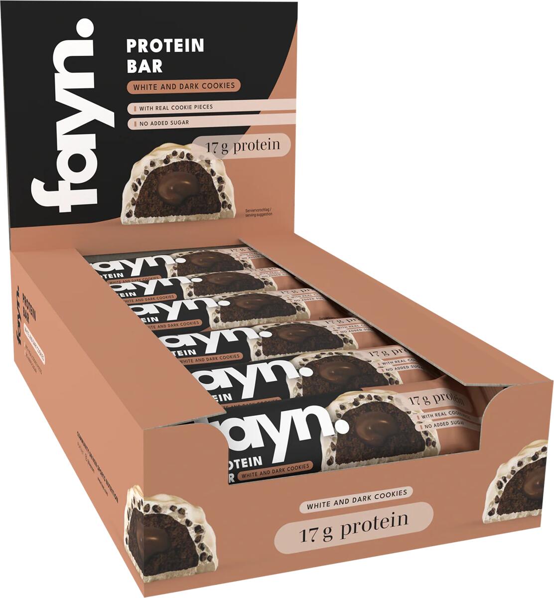 fayn Protein Bar Box, 12 x 55 g Riegel, White and Dark Cookies