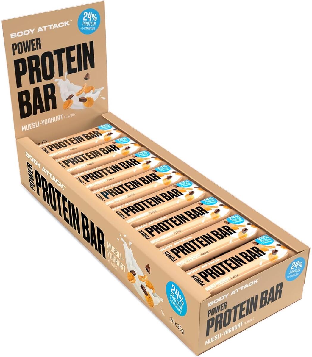 Body Attack Power Protein Bar, 24 x 35 g Riegel, Muesli-Yoghurt