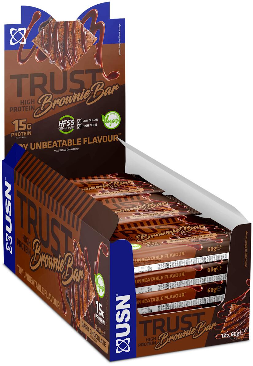 USN Trust Vegan Protein Brownie Bar, 12 x 60 g Riegel, Dark Chocolate