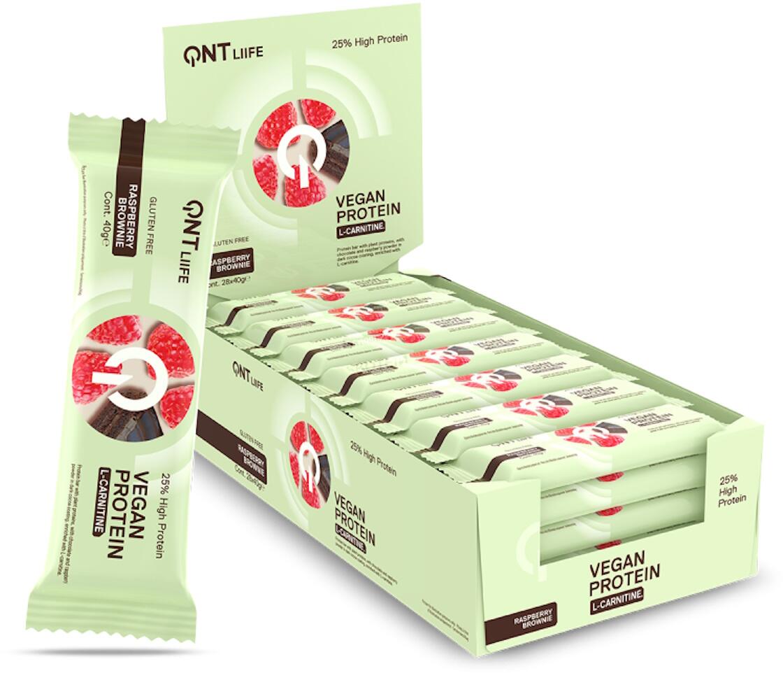 QNT Vegan Protein Bar + L-Carnitine (28x40g) Chocolate Raspberry Brownie - Riegel - Protein-Riegel