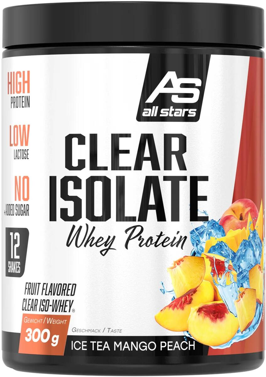 All Stars Clear Isolate Whey Protein, 300 g Dose, Ice Tea Mango Peach