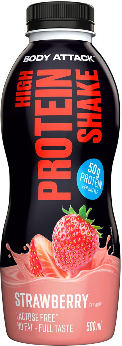 Body Attack High Protein Shake - Strawberry - 500 ml - Starke 50g Eiweiß pro Flasche