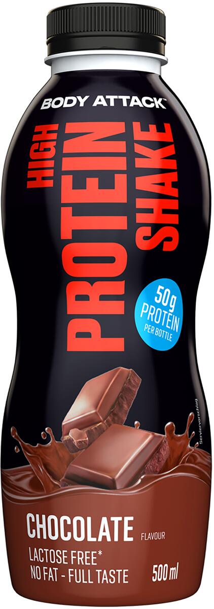 Body Attack High Protein Shake, 12 x 500 ml Flasche, Chocolate (inkl. 3,- Euro Pfand)
