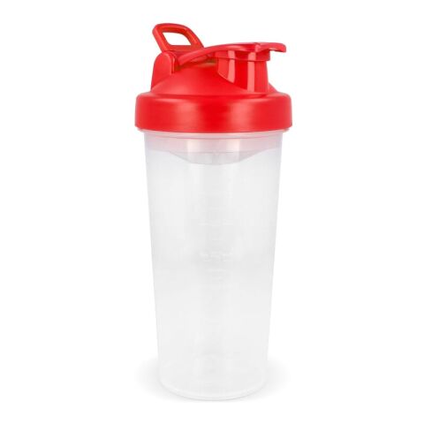 Werbeartikel 700 ml Sport-Shaker mit Rührgitter & Trageschlaufe für Protein-Shakes klumpfrei & auslaufsicher – rot weiß – mit Logo bedruckt