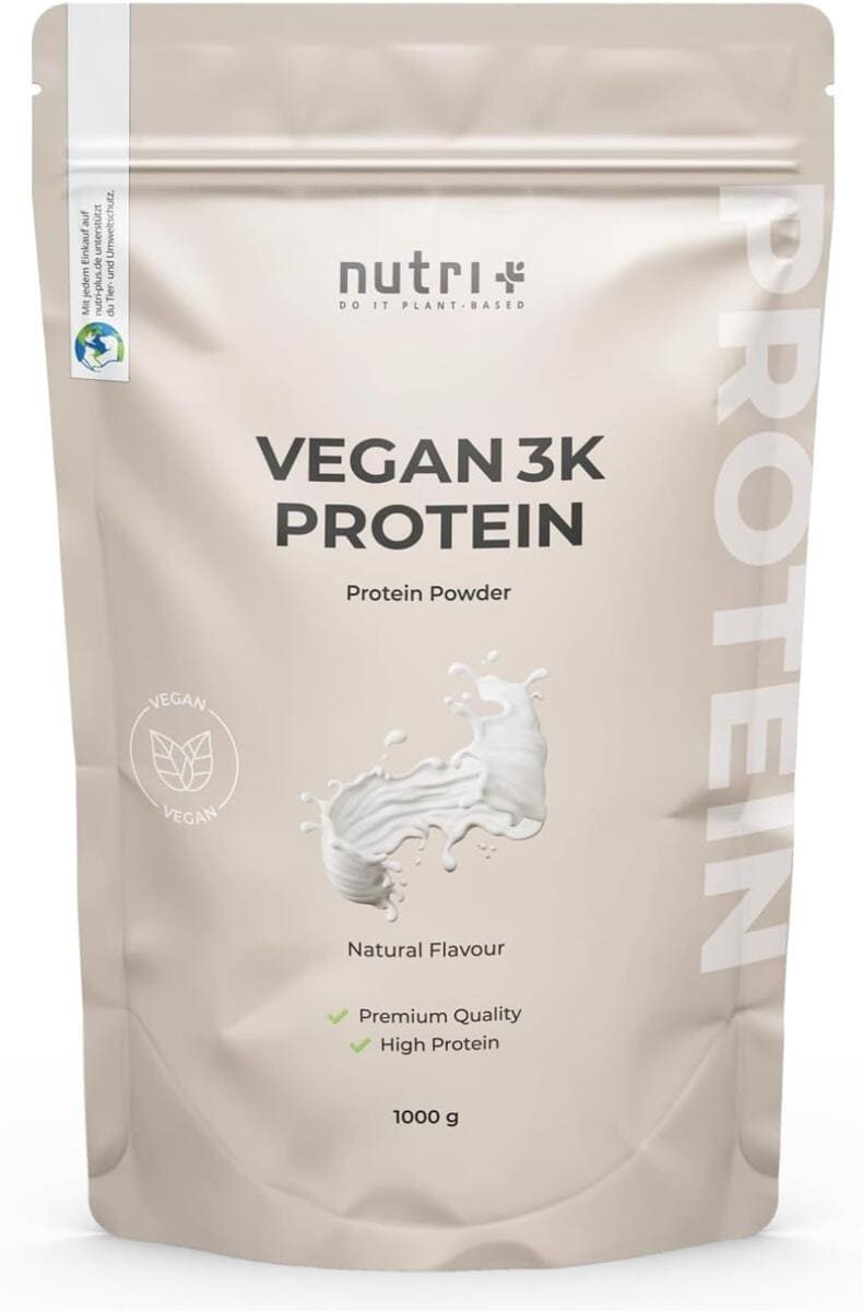nutri+ veganes 3K Proteinpulver, 1000 g Beutel, Natural