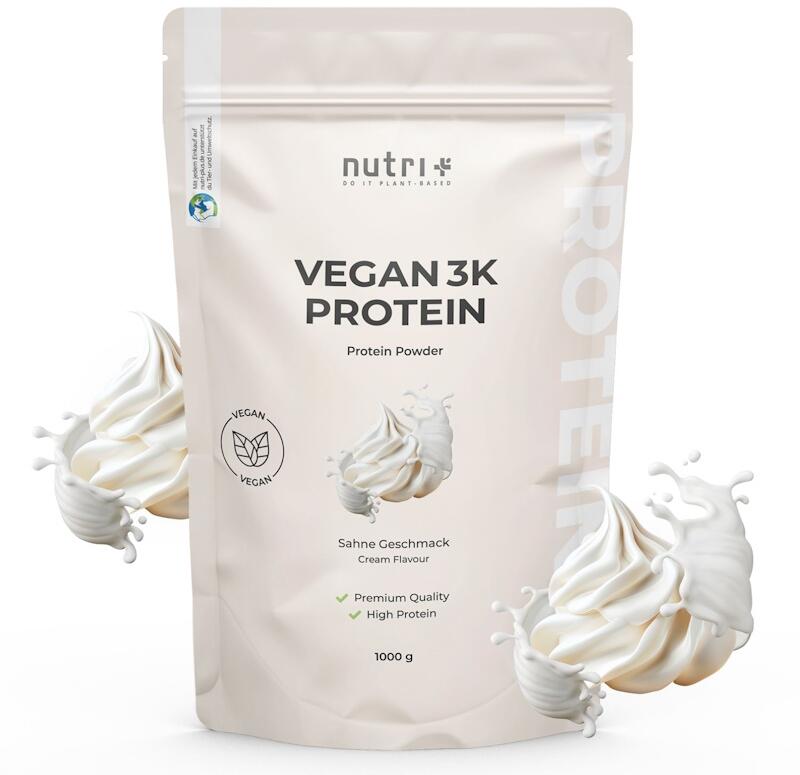 nutri+ veganes 3K Proteinpulver, 1000 g Beutel, Sahne