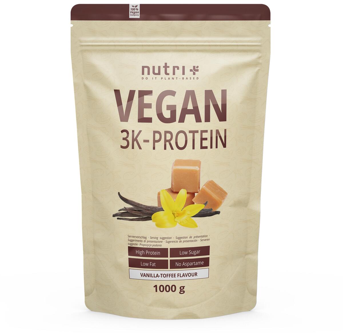 nutri+ 3K Proteinpulver Vanilla-Toffee | 1000 g | vegan | hoher Eiweißgehalt | mit 3 pflanzlichen Proteinen | cremige Konsistenz