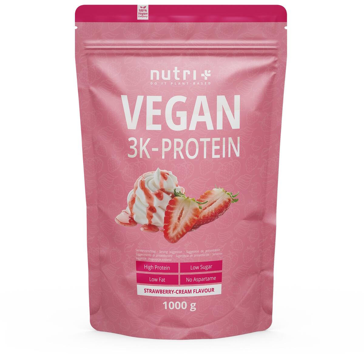 nutri+ veganes 3K Proteinpulver, 1000 g Beutel, Strawberry-Cream