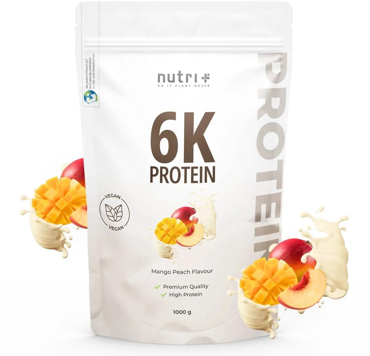 nutri+ veganes 6K Proteinpulver, 1000 g Beutel, Mango-Peach