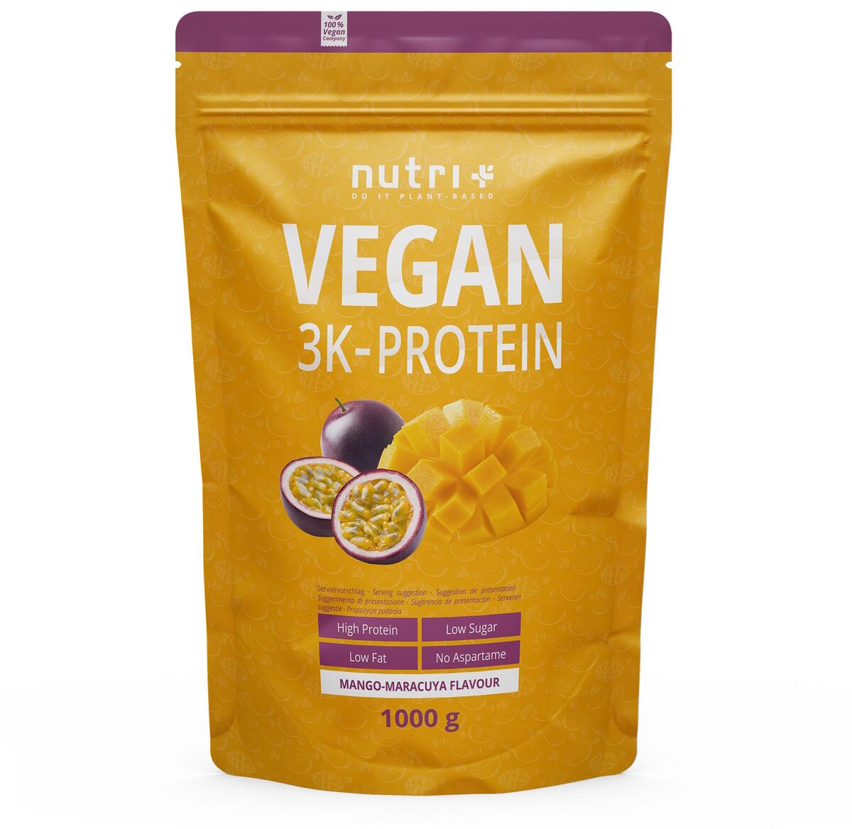 nutri+ veganes 3K Proteinpulver, 1000 g Beutel, Mango-Maracuja