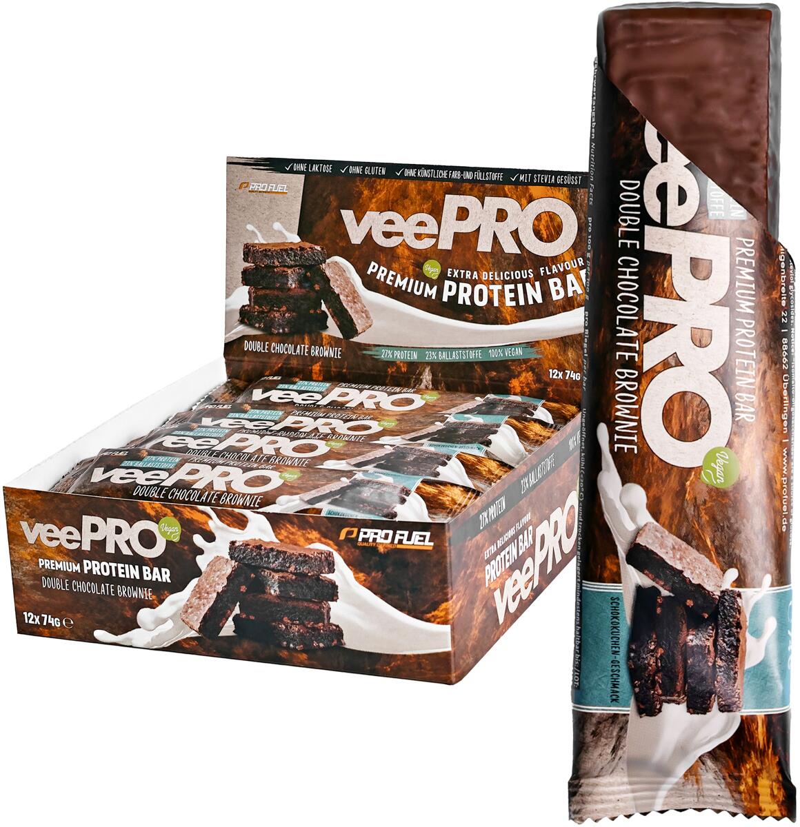 ProFuel veePRO Proteinriegel, 12 x 74 g Riegel, Double Chocolate Brownie