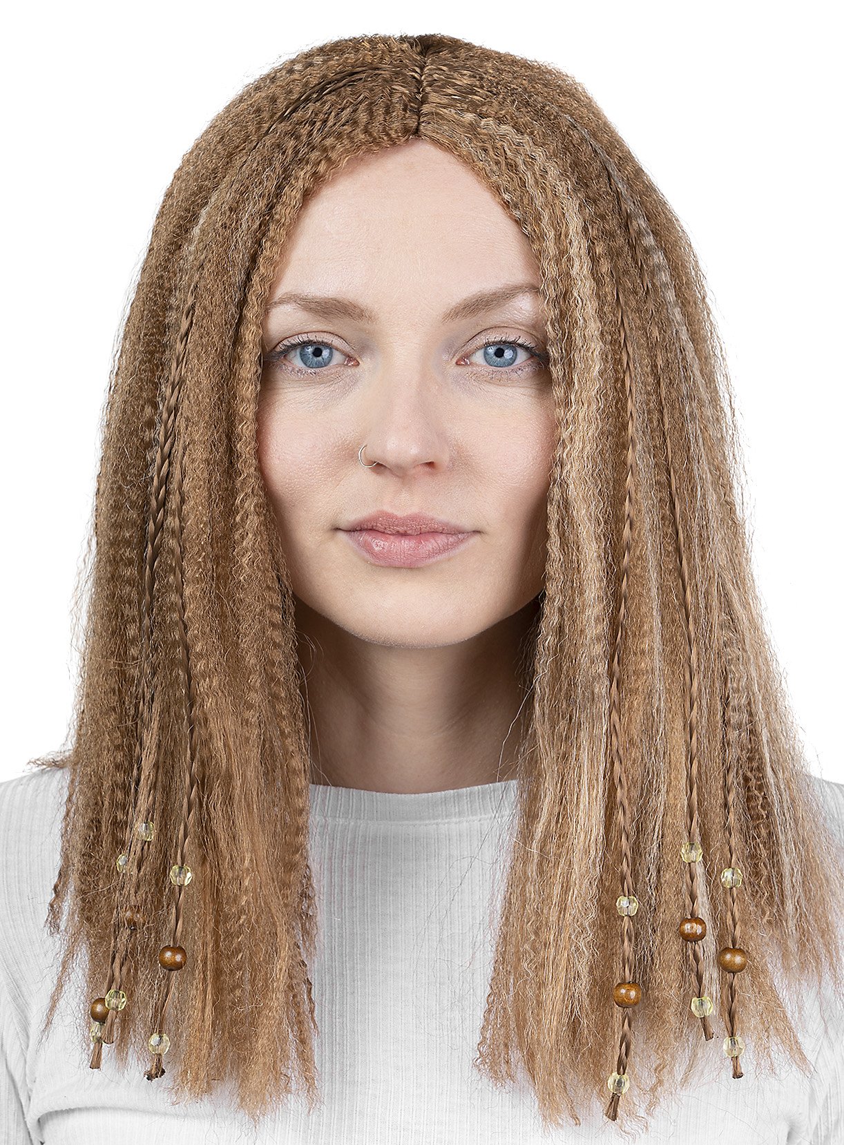 Gekreppte Pruik Met Vlechten En Kralen